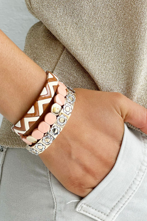 These bracelets are all about fun and flair, featuring a glossy enamel finish that adds a pop of fab to any outfit.