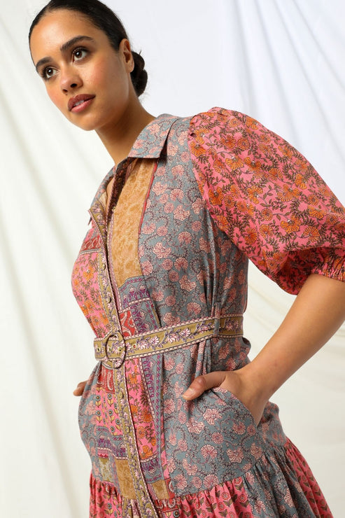 Featuring a high collared neckline, a button-down front, and soft puffed short sleeves, this maxi dress brings a refined yet feminine touch to your wardrobe. The adjustable belt gently cinches the waist, creating a flattering shape while keeping things effortlessly wearable. Whether you're dressing up or keeping it casual, the Joanna is your go-to dress.