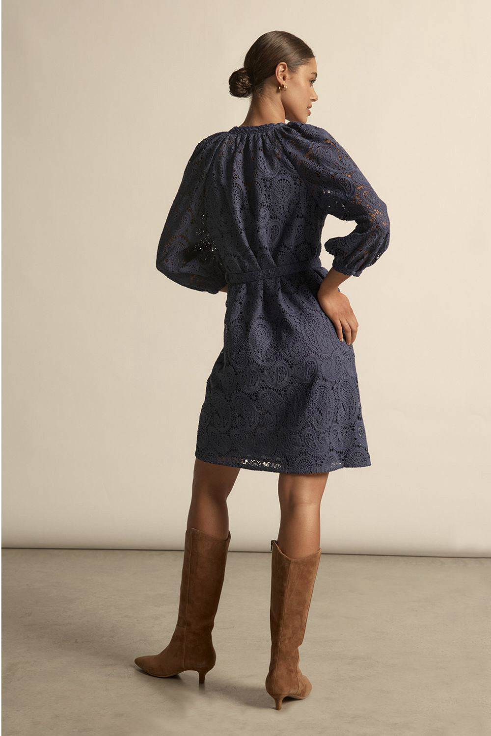 crafted in a 70s-inspired paisley poly-lace