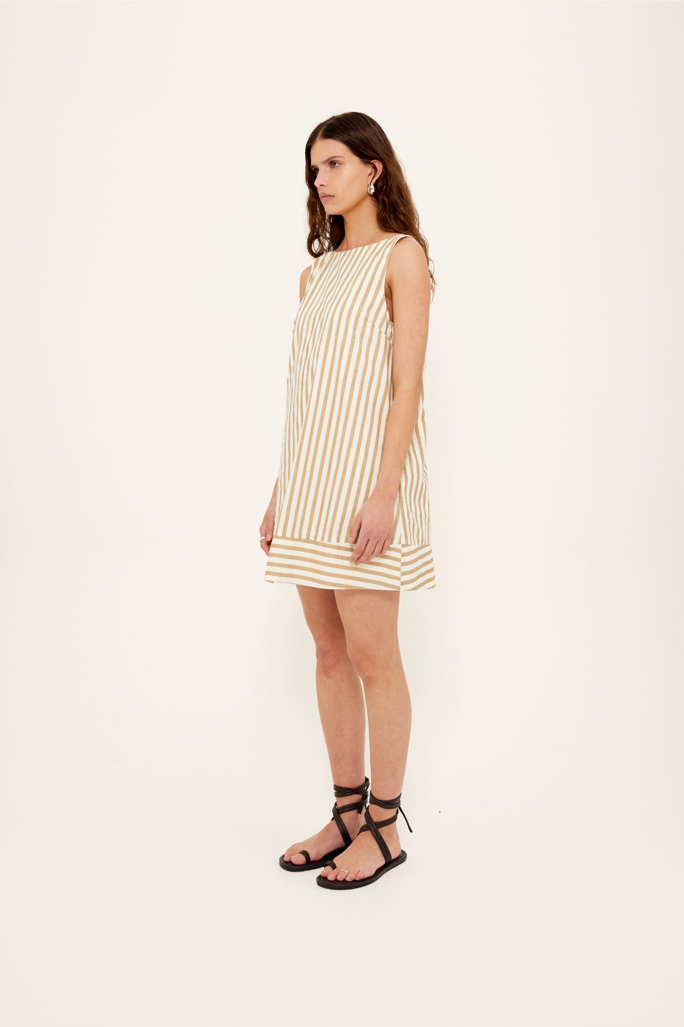 The Zahara Cotton Stripe Mini Skirt redefines easy summer dressing. Crafted from 100% cotton in a timeless stripe, it features a relaxed silhouette with a statement low back for effortless elegance.