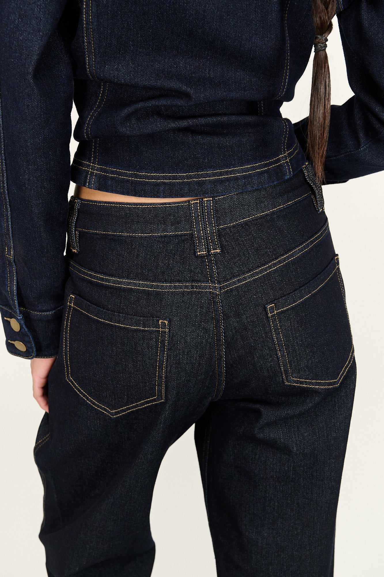The Aalto Dark Wash Straight Leg Jeans are a refined denim essential designed with clean lines and tailored structure for elevated everyday wear. Crafted from sturdy cotton denim, they feature a mid-rise waist, straight leg silhouette and contrast topstitch detailing, finished in a deep indigo wash for a polished, versatile finish.