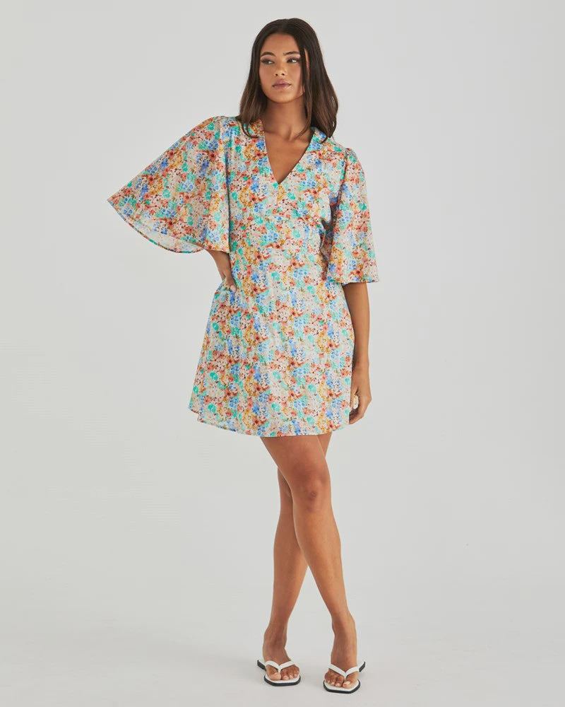 The Panna Dress features flowing kimono sleeves, soft tie details, and a dreamy exclusive print. It’s an easy, elegant piece that works from beach to brunch. Just add slides and you’re set.