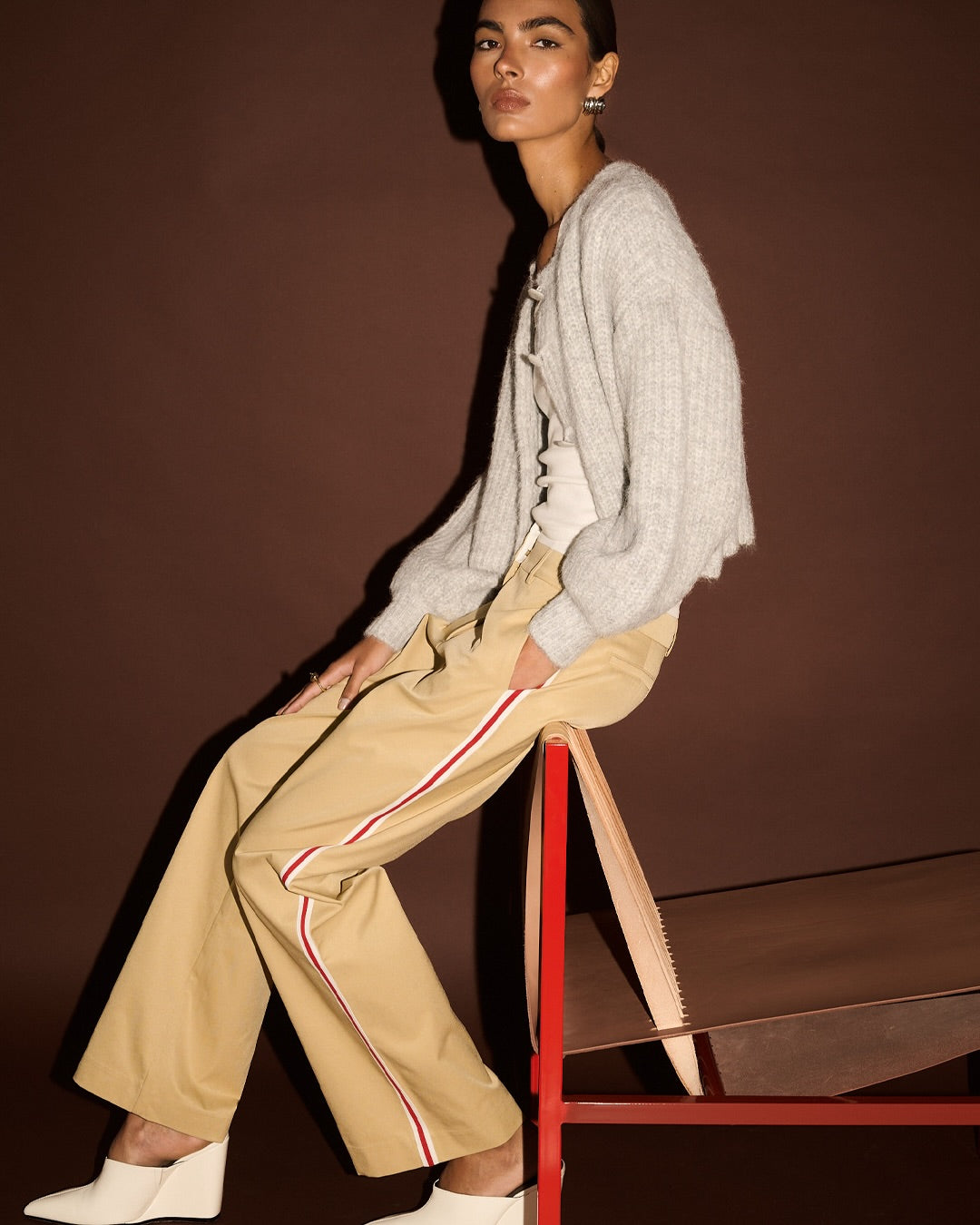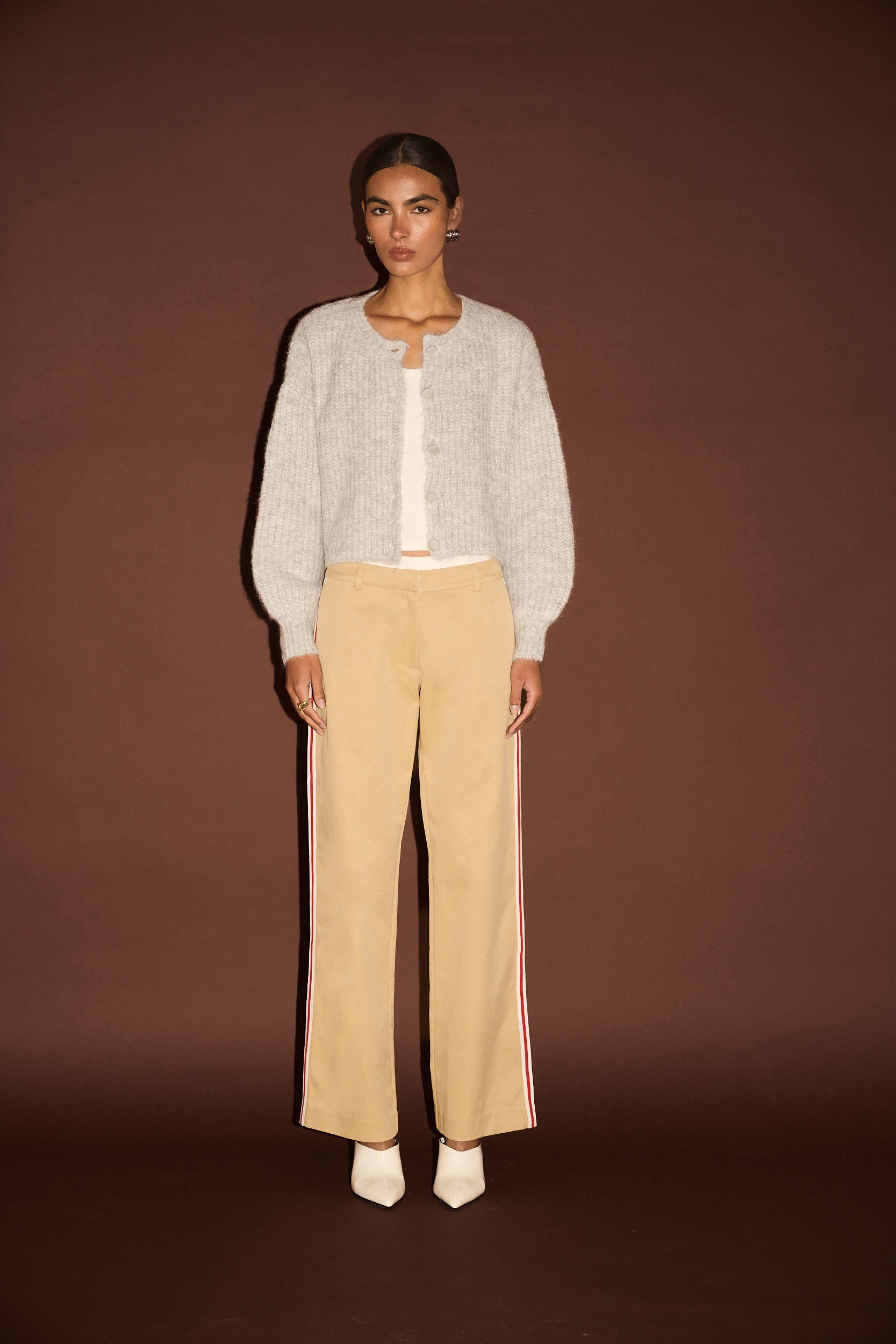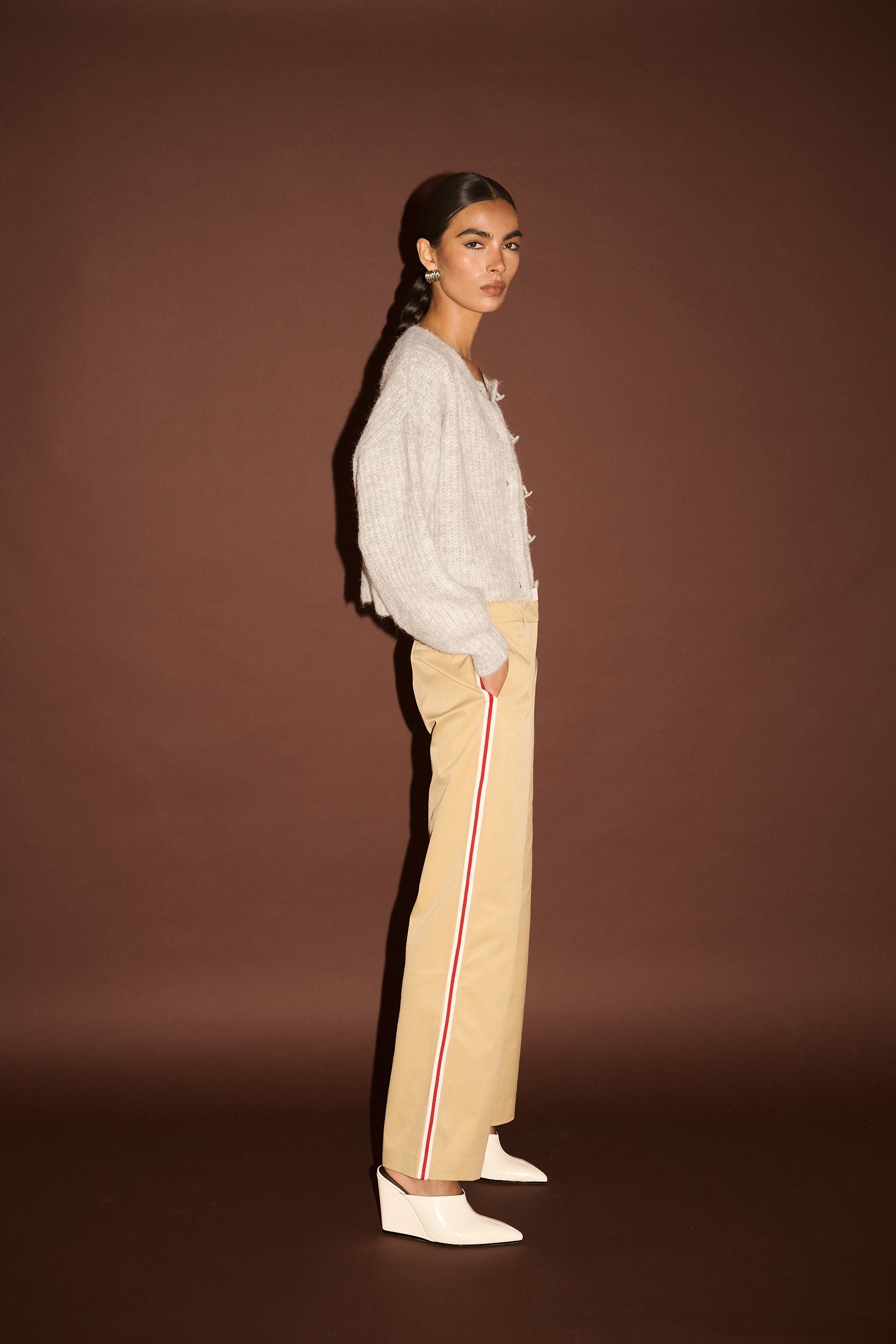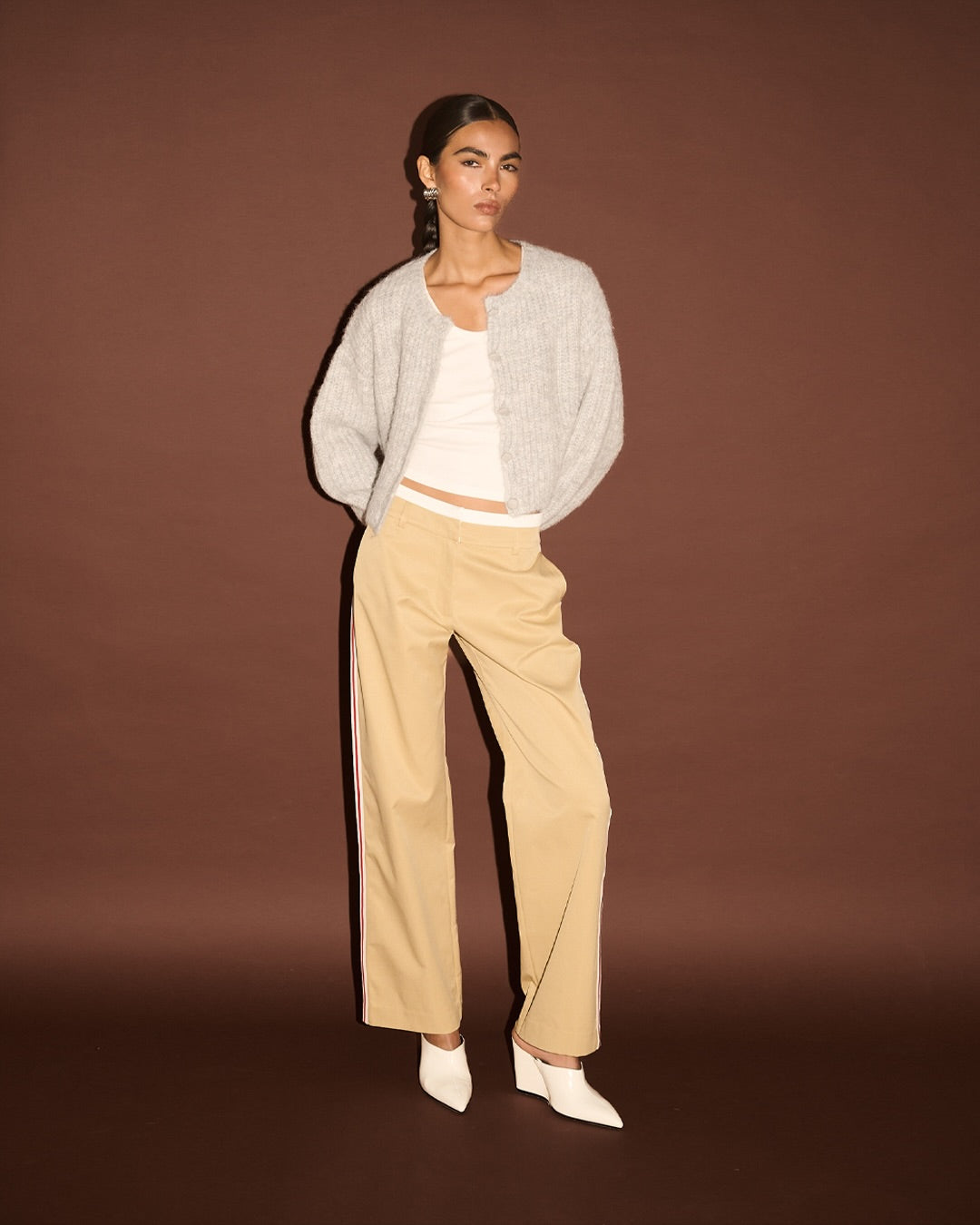 Tailored structure meets sporty detailing in the Anja Beige Striped Contrast Waist Pants. Designed with a clean straight-leg silhouette, this style is crafted from a smooth woven fabrication that drapes neatly from waist to hem. A contrasting waist band and side stripe design adds an elevated edge, while the neutral tone keeps the look polished and versatile for everyday wear.