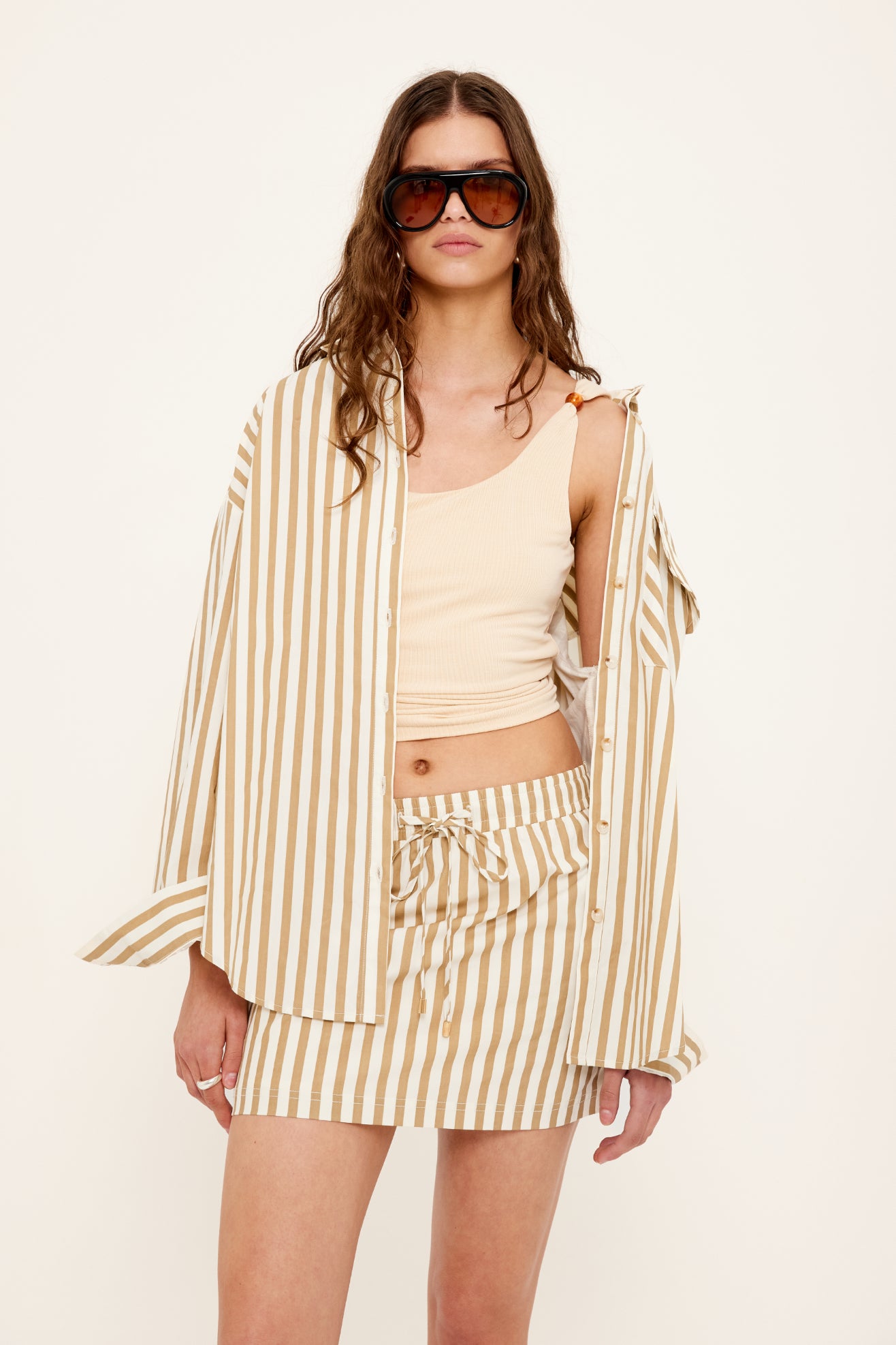 The Zahara Oversize Shirt offers laid-back polish in a timeless stripe. Crafted from 100% cotton, this relaxed button-up is perfect for layering or pairing with the matching skirt for an effortless co-ord look.