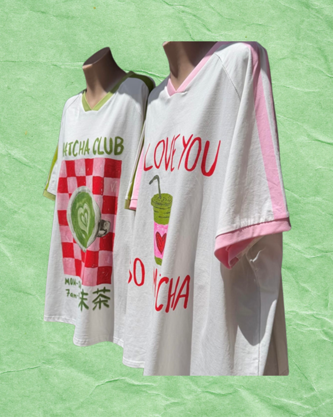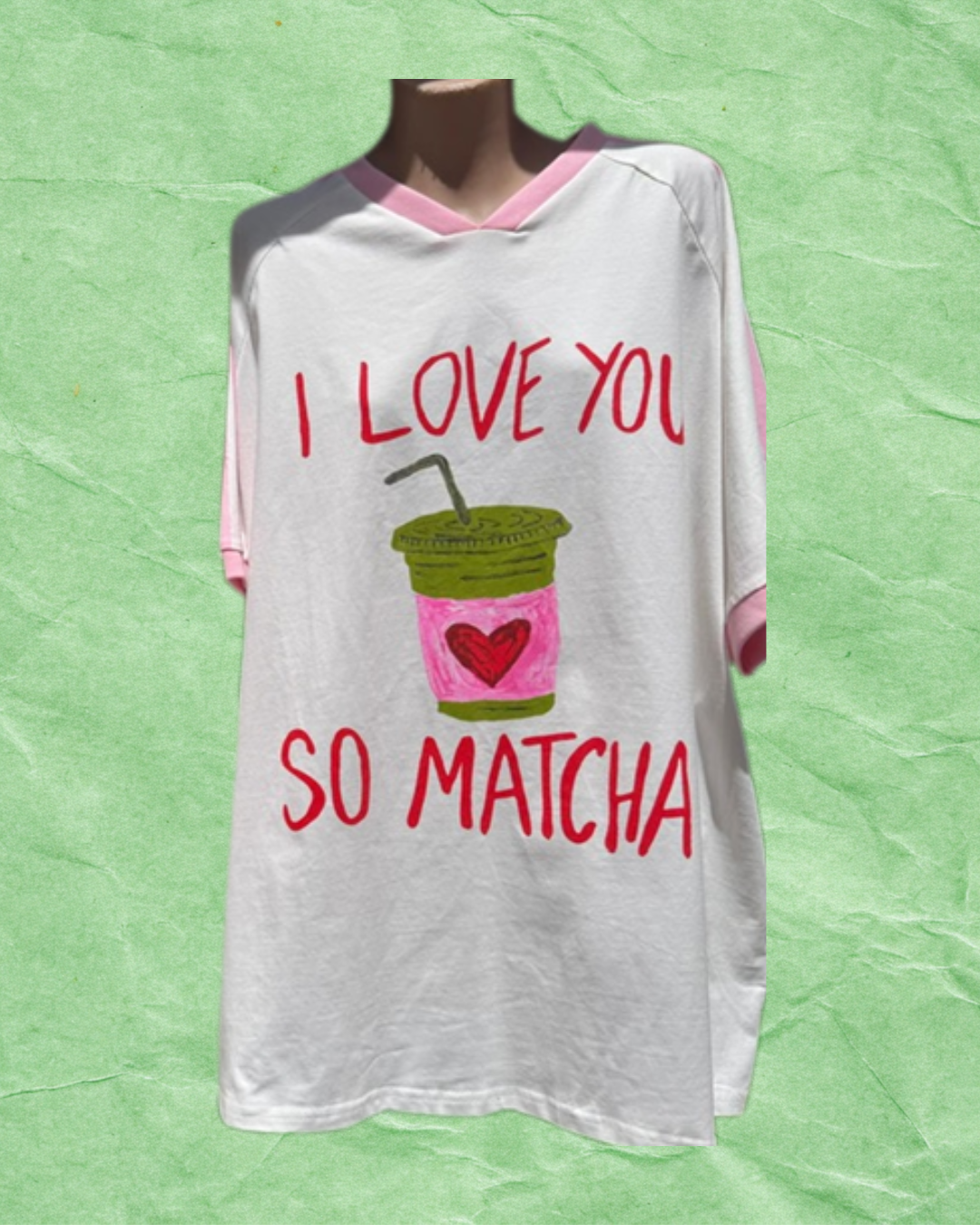 Matcha girlies, this ones for you! Oversize, soft cotton tee featuring a v-neck and "I love you Matcha" graphic.
