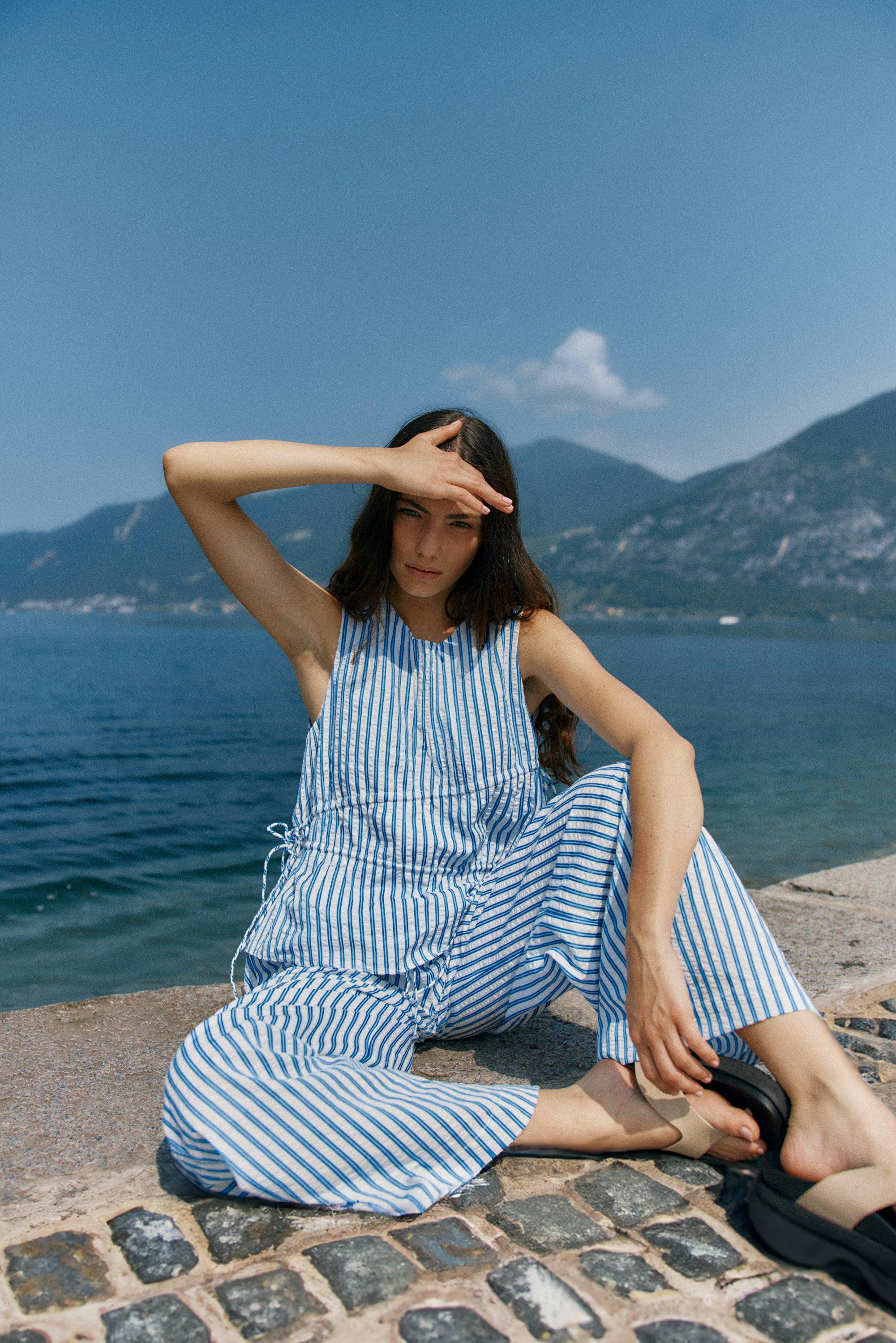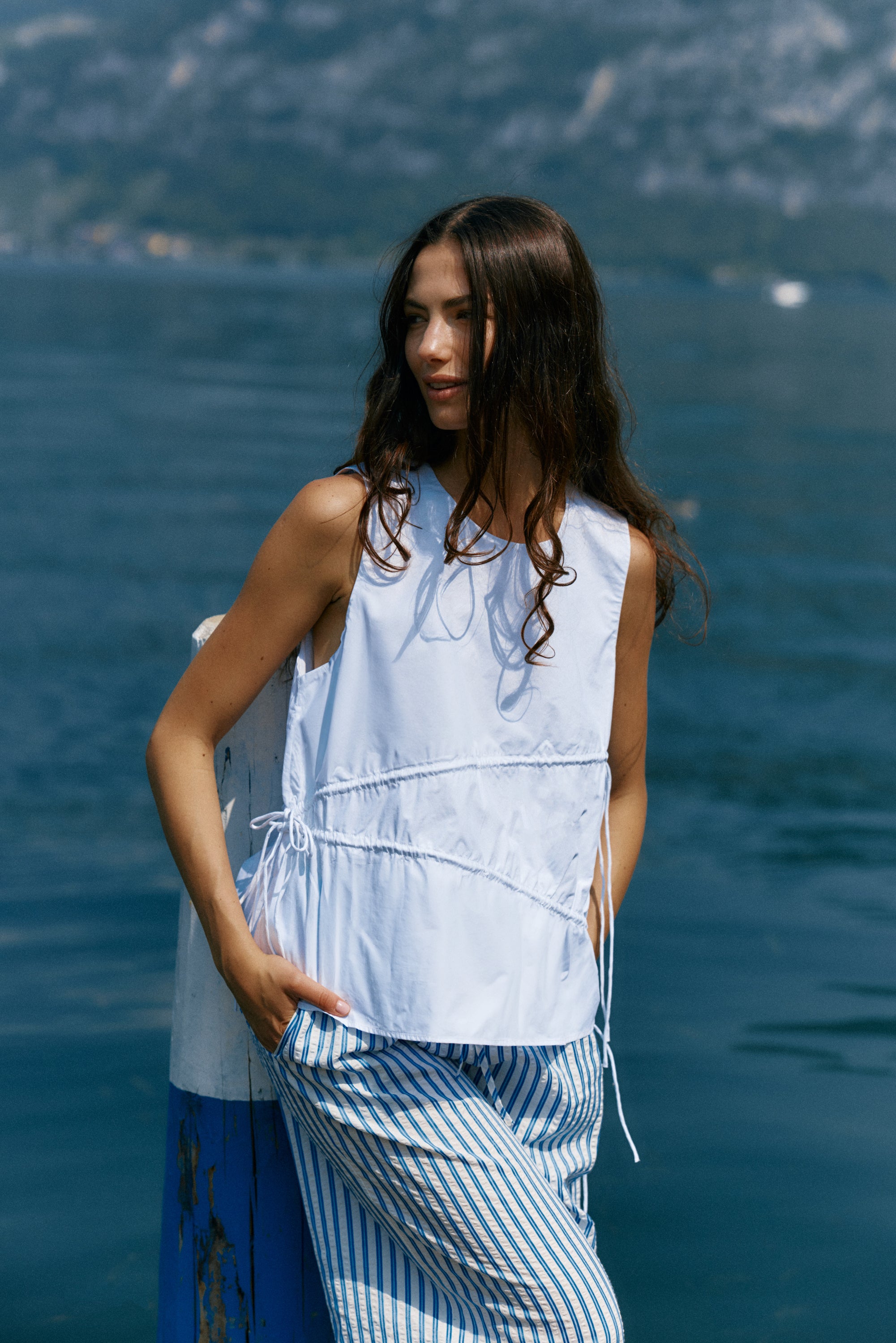 Adjustable tie sides let you shape and style this top your way, while the asymmetric gathering at the bust adds a cool, fashion-forward twist. Lightweight and relaxed, it’s the perfect companion to your favourite denim. Playful, versatile and always ready for a good time.